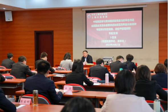 2021年10月26日,中智集團黨委書記、董事長卜玉龍在上海市委黨校(上海行政學院)為參加中智集團學習貫徹國資委黨委習近平總書記全國國企黨建會重要講話發(fā)表五周年學習座談會精神專題研討班暨黨務(wù)、紀檢干部培訓班全體學員,作了題為《提高政治站位,把握時代要求,切實提高國企黨建質(zhì)量》的黨課輔導,他指出,要持續(xù)深化學習貫徹習近平總書記全國國企黨建會重要講話精神,按照國資委黨委“八個牢牢把握”相關(guān)要求,扎實做好集團改革發(fā)展和黨的建設(shè)各項工作,鞏固擴大工作成果,全面提高黨的建設(shè)質(zhì)量水平,更好引領(lǐng)保障高質(zhì)量發(fā)展。集團總經(jīng)理助理,中智上海公司黨委書記、副總經(jīng)理李雙主持。